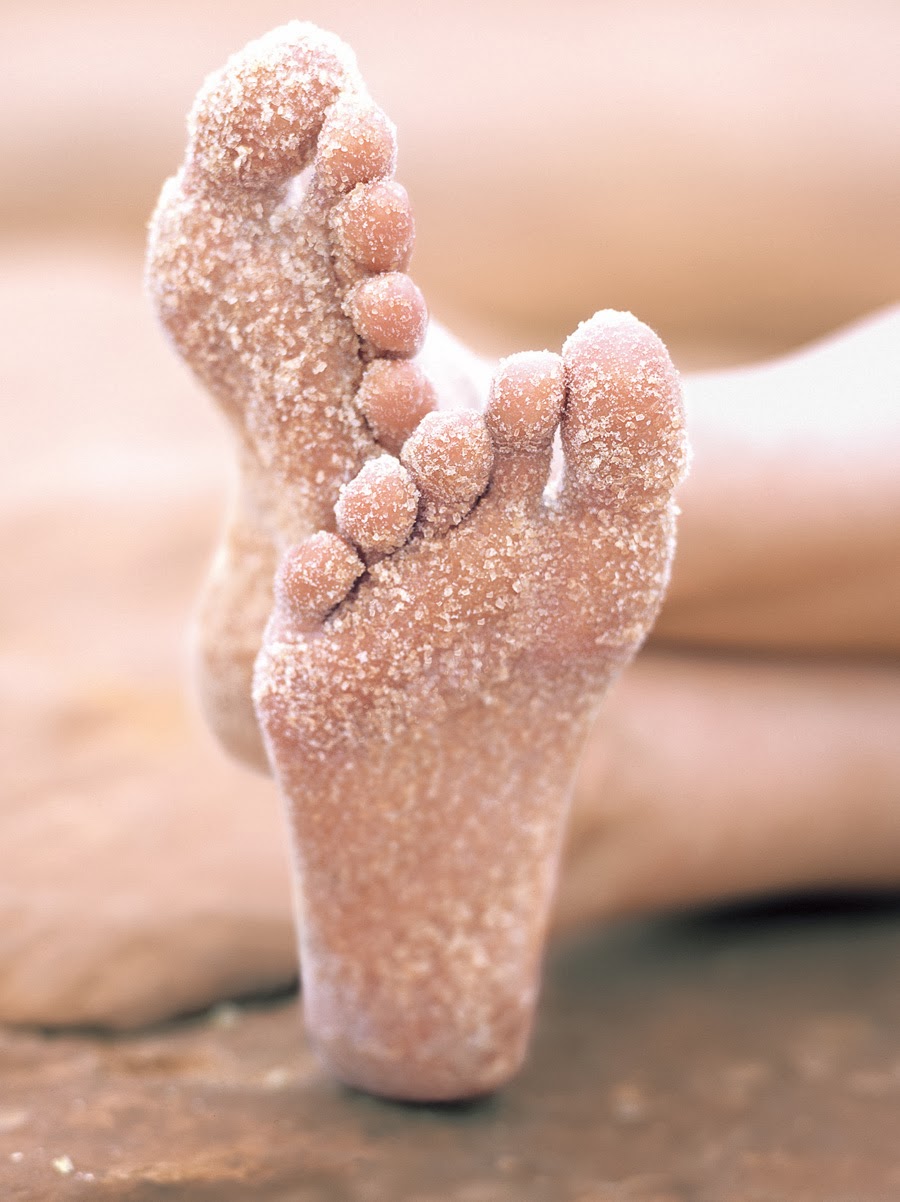 Ороговевшие участки кожи трите регулярно пастой из морской соли и молока, нанося ее толстым слоем.